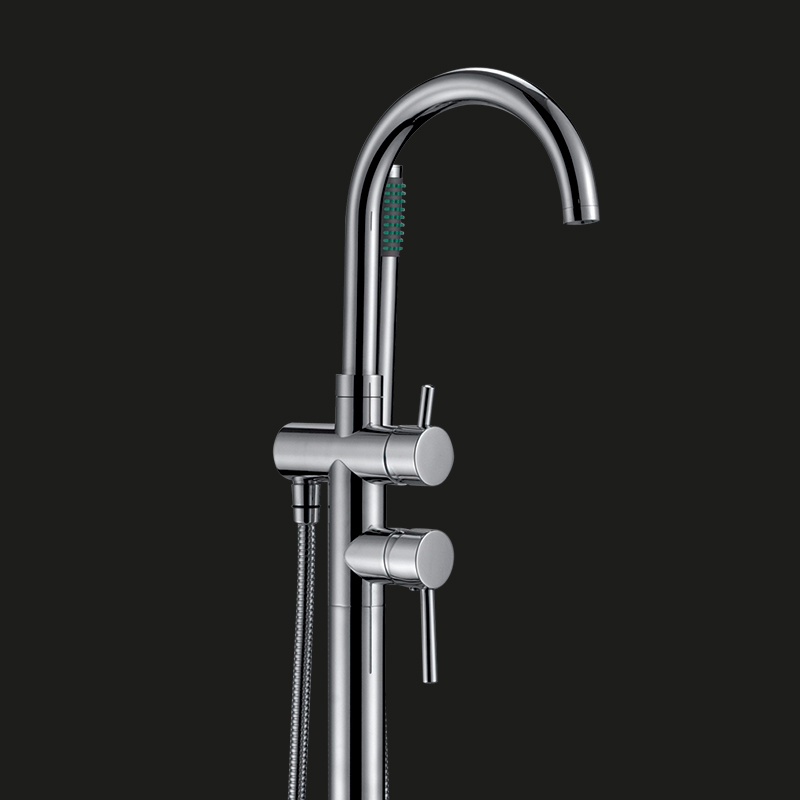 Lattiasekoitin kromattua messinkiä. Asennetaan rakennettuun korokkeeseen siten, että vesijohdot voidaan liittää sekoittimeen seinästä. Vesiliitäntää ei saa vetää lattian vedeneristeen läpi.