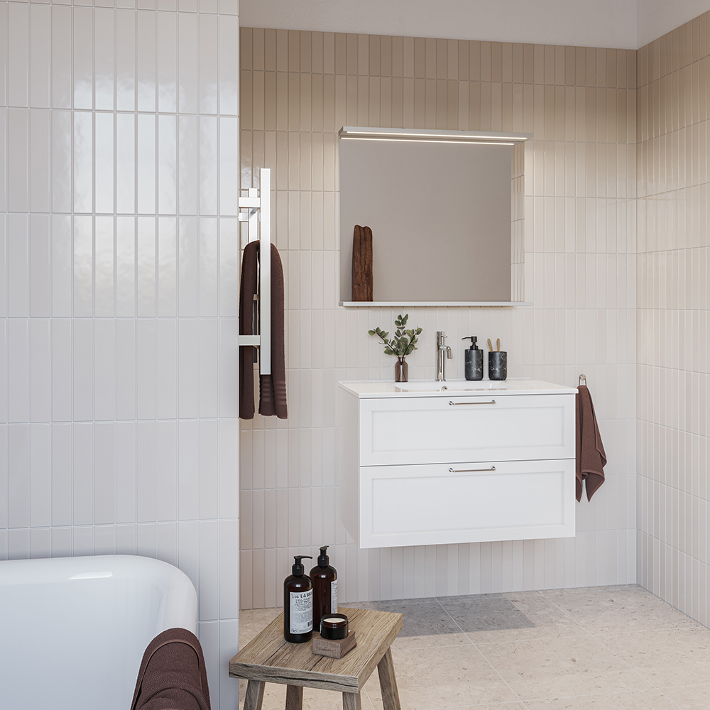 Nejd on klassisen kaunis kaluste tyylikkäillä kehys fronteilla. Kokonaisuudessaan avattavat ja pehmeästi sulkeutuvat laatikot metalliseilla sivuilla. Laatikoiden irroitettavat laatikkomatot pitävät tavarat paikoillaan ja helpottavat siivoamista. Ylälaatikon U-muotoilu jättää vesilukolle tilaa. Kaluste on valmisteltu sekä seinä- että lattiaviemäröinnille ja kalusteen ripustushela on säädettävä. Kaluste saatavana väreinä matta valkoinen ja antrasiitinharmaa. Suosittelemme vesilukkoa 20072000. Osta mieleisesi vedin.
